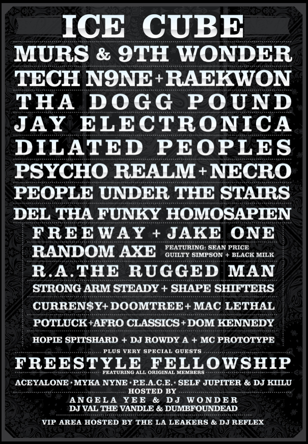 Check out this lineup! This is raw, unadulterated hip-hop at it’s best. Congrats to Dumbfoundead. Maybe in a few years we’ll see him and others invited to participate as headlining performers.