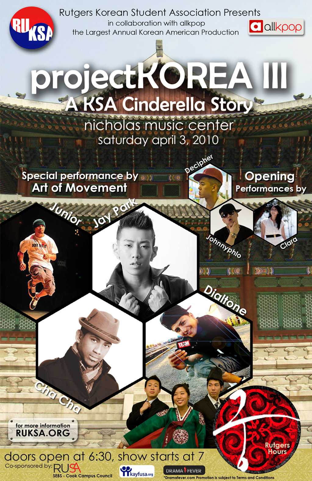 That’s right friends, you read that right. In what is an incredibly stacked line up we got Decipher, Johnnyphlo, Clara Chung, Ailee, and an appearance from Jay Park aka Jaebeom the former 2PM member and his dance crew Art of Movement all performing at projectKorea, a huge event put on by the fine folks at the Rutgers University Korean Student Association in conjunction with allkpop. It’s being held this Saturday, April 3rd so if you’re anywhere near the Jersey area this is an event I highly recommend you do not miss.