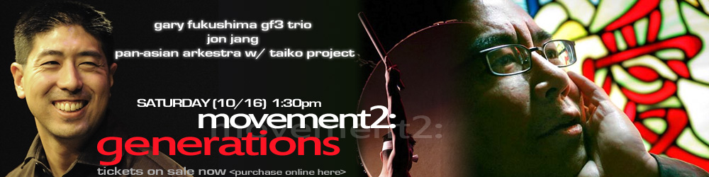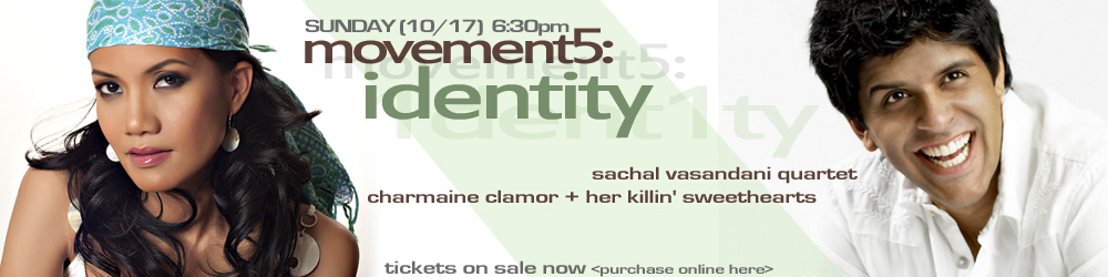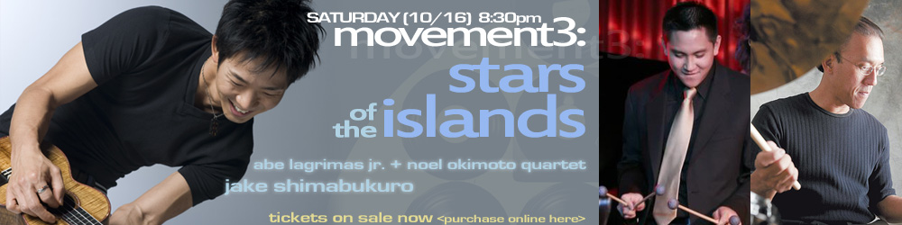 Movement 1: Urbanisms Movement 2: Generations Movement 3: Stars of the Islands Movement 4: Angles Movement 5: Identity Friday (10/15) 8:30pm Kero One Milk & Jade by Dana Leong Shing02 Saturday (10/16) 1:30pm Gary Fukushima GF3 Trio Jon Jang Solo Piano Pan-Asian Arkestra with Taiko Project world premiere of “Concerto for Jazz Orchestra and Taiko” Saturday (10/16) 8:30pm Abe Lagrimas, Jr. and Noel Okimoto Quartet Jake Shimabukuro Sunday (10/17) 1:30pm Emi Meyer Shanghai Restoration Project Sunday (10/17) 6:30pm Sachal Vasandani Quartet Charmaine Clamor & her Killin’ Sweethearts Admission Packages
