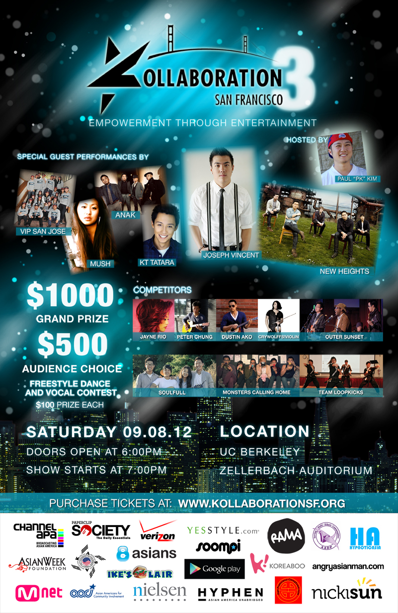 assemblywoman Fiona Ma, and hip-hop dancer and choreographer Ellen Kim.The evening includes Kollaboration San Francisco’s highly anticipated Freestyle Dance and Vocal
