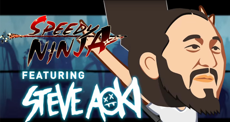 The other week we shared about how Traphik had been included as a character in a new mobile game. Well, this may be the start of a new trend as Steve Aoki has also joined the mobile gaming foray. His likeness is now a playable character in the running game, Speedy Ninja. I haven’t tried it out myself but here’s some more detail along with the official trailer!